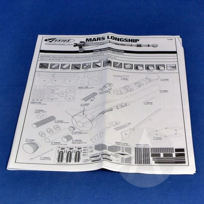 The Destination MarsTM Mars LongshipTM is a fictional concept by Estes for mass transportation to Mars. This model rocket stands about 27 inches tall and flies on 24mm engines. It can reach up to 500ft on an E12-4 engine.