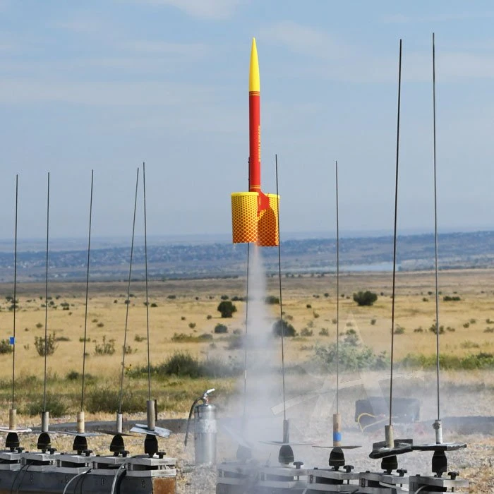 The Double Ringer is an easy-to-build model rocket that comes with two unique ring-shaped gliders that detach at apogee to add an extra dimension of fun to the recovery. The gliders double as extra fins, so the rocket is super-stable when you launch it. Great for rocket exhibitions and family gatherings.