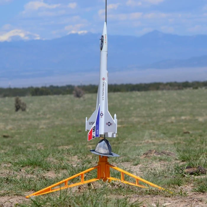 This is an updated version of the old Centuri F-16 rocket kit. The rocket features balsa fins, plastic nose cone, and a clear vacuum form canopy.