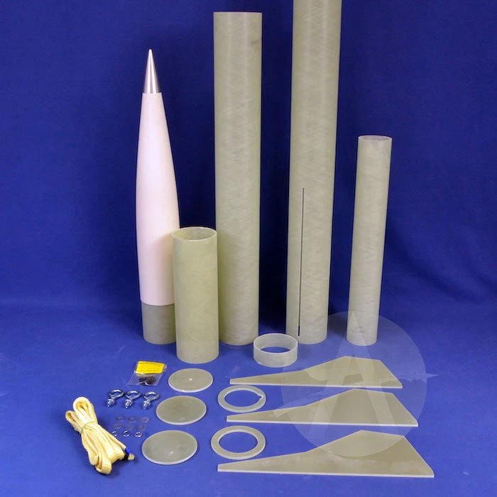 The Messier 76 is a 3in kit, built from fiberglass, and designed for high power. It’s durable, heavy, and stands taller than most other rockets on the launch field. This is for the experienced builder, one who is looking for a quality rocket for high-power launches.