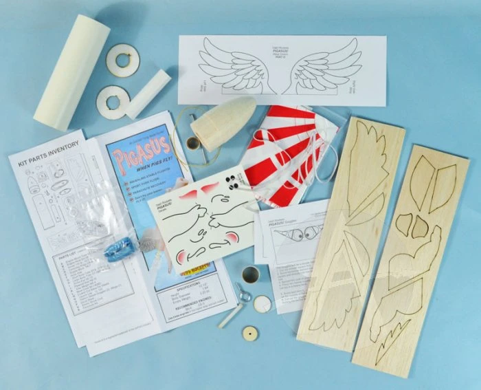 Is that really a flying pig? Yep! In the legacy of the goonie birds, the Pigasus kit will put a squeal in your day as it zooms skyward. Based around a 1.84″ size tube, this kit features laser cut balsa fins, a balsa nose cone and a large plastic chute.