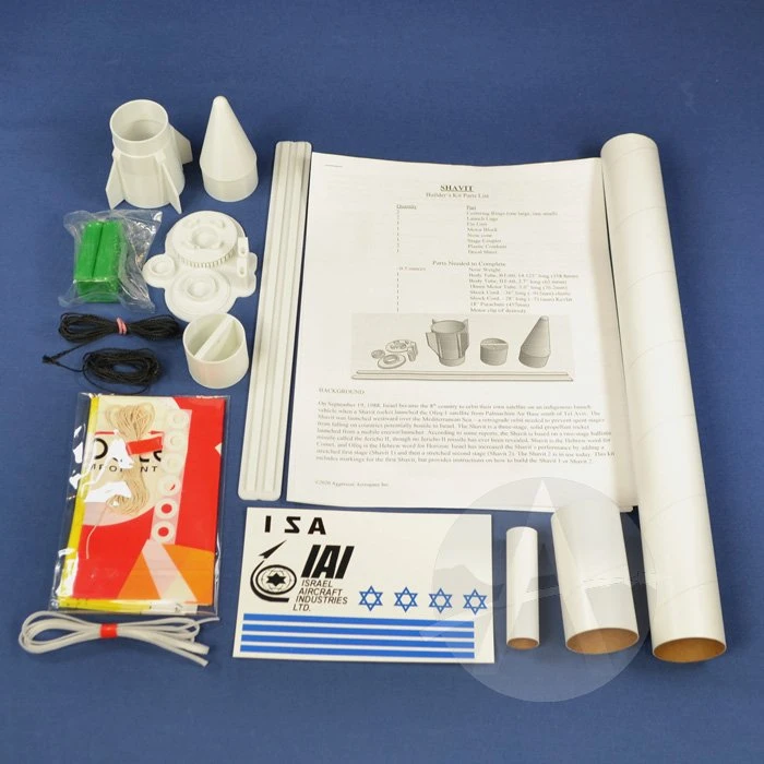 The Shavit rocket is a 1/32.5 scale rendition of Israel’s first orbital rocket. This is a relatively simple rocket to build, yet it includes some elements for more experienced builders that really make this rocket a showstopper at the flying field. Flies great on 18mm diameter rocket motors.