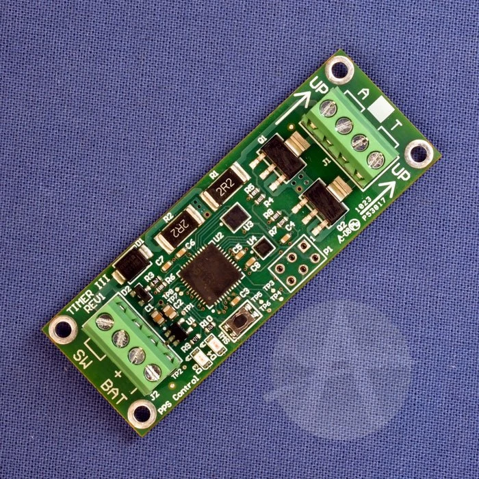 The Simple Timer controls ignition of upper stages by setting a time from liftoff when the air-started motor should ignite. Also includes an apogee deployment channel for extra safety. Its built-in logic prevents ignition of the upper stage if the rocket goes unstable or is tilted more than 45° from vertical at the time of ignition.